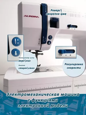 Швейная машинка для дома Aurora ШвейДом Professional принадлежит к электромеханическому и электронному классу, имеет классический дизайн, наделена надежным управлением.
