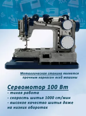 Машина полностью на металлическом основании. Она надежно стоит на столе и не будет скакать во время шитья.